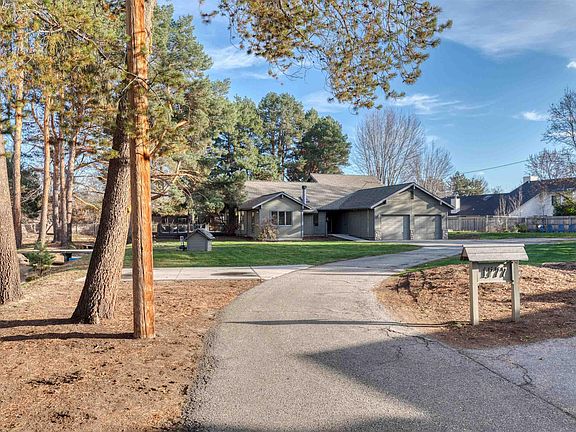 Rare opportunity to own just over an acre off idyllic Holden Lane, a secluded yet convenient SE Boise location close to downtown, the river, and airport. Tucked down a private lane, this home is a quiet oasis featuring a seasonal creek, large garden space, and room for RV parking. The massive Trex deck gives the opportunity for indoor/outdoor living with endless entertaining opportunities, or provides all the peace to cozy up and enjoy your favorite beverage with the sounds of nature. Endless windows provide natural light with the mature landscaping maintaining privacy. Step into the great room with vaulted post-and-beam ceilings, rock walls, and rich wood tones giving charm and character to the home. Primary suite offers a sitting room with custom built-ins, vaulted ceilings, and a large bathroom. Second main floor bedroom also could serve as a great office. Upstairs find the warm, wood vaulted ceiling throughout with an additional living space, two bedrooms, and a bathroom. The expansive garage can fit up to four cars or provide parking as well as a shop for all of your tools. This is one you won’t want to miss.
