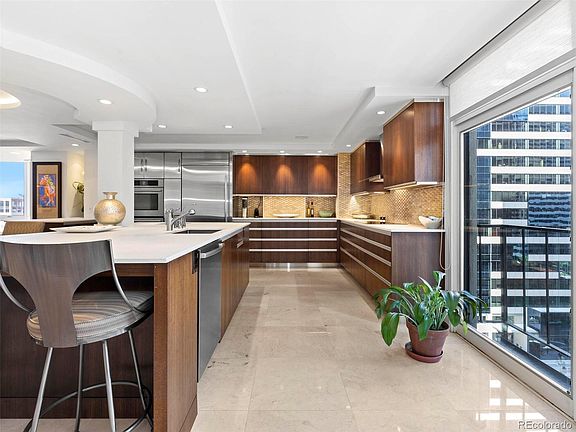 This exquisitely remodeled residence was custom built by nationally recognized architect/builder & local designers. Every inch has been thoughtfully & superbly designed. (Condo taken down to the studs, creating a clean palette). Floor to ceiling Pella windows with stunning views of downtown & mountains. Shown in Luxe magazine, quality finishes are complemented by extraordinary functionality. Spectacular architectural details include coved ceilings, level-5 drywall with ¼-inch reveals, marble floors & 100% wool carpet, solid wood doors & Venetian plaster. The kitchen features custom walnut cabinets, EuroStone countertops, unique onyx backsplash, 2 sinks, induction cooktop, built-in stainless appliances & wine refrigerators. Both bathrooms showcase gorgeous marble showers w/beautiful inlay. Notice the mother of pearl wall behind the mirror, TV in mirror & heated floors. Love working from home at built-in partner’s desk w/mtn. views. Two people can easily work comfortably together. Plenty of shelves & drawers keep work hidden yet within reach. Need storage? Every square inch has been optimized w/tons of built-ins plus laundry room w/even more closets & storage. All closets are blended into the wall for a seamless look & have instant-on lighting; all drawers have soft-close. You’ll love the whole-house zone-controlled sound system! The Windsor offers first-class amenities including 24-hour desk staff; lush patios w/BBQ grills, outdoor dining, firepit & community herb garden; fitness center w/steam & sauna; tennis/pickleball court; community room w/full kitchen, flat screen TV’s & game tables; conference rooms & underground guest parking.