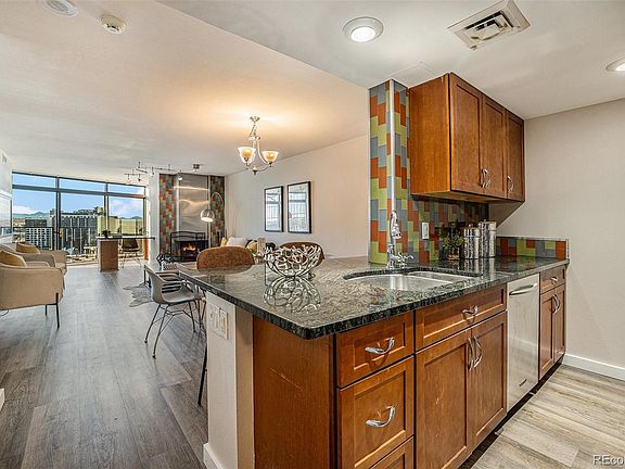Excellent Price-Per-Square-Foot Value! Enjoy downtown living at its finest while taking in iconic views of Union Station and the Rocky Mountains from your living room. This wonderfully updated 2 bedroom 1 bath condo in the Windsor has everything you want from a condo. This home has all new flooring and has been completely repainted. The custom aquarium has been recently serviced and is ready to go. There is plenty of storage space available inside from the walk-in entry closet to the built-in hallway pantry and in both bedrooms. Open concept living / dining room and office area allows in plenty of natural light and you get great views of the city! The bathroom provides ample cabinet storage / counter space, heated tile flooring with a walk in shower with multiple shower heads. The main bedroom is spacious and has access to the bathroom, custom lighting and a walk in closet with closet organizer. The kitchen also has plenty of cabinet space and counter space, stainless steel appliances and recessed lighting. Other features include washer and dryer in unit, a fireplace in the living room and more. The Windsor residences features a remodeled front entry and hallways throughout, secure parking garage and storage. The amenities will delight you especially the one of a kind residents room featuring multiple TVs , large entertaining kitchen, piano, pool table and more. The outdoor patio has a jogging track, tennis court and basketball court plus seating area and grills. There is an expansive fitness center with sauna and multiple meeting rooms plus more. Perfect if you are looking for a downtown rental situation with lots of flexibility.