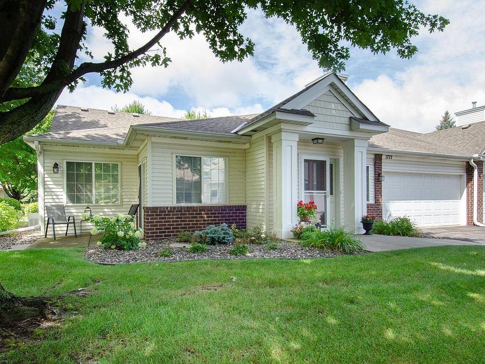 Whether you need a full time home or you are a snow bird, don't miss out on this single level quad TH in beautiful White Bear Lake! Super covenient location just North of 694 + minutes from White Bear's quaint downtown area and the lake. Quiet neighborhood with little traffic. This end unit features 2 good size bedrooms including a Primar Suite with a private large bath (2 sinks), walk-in clsoet, and vaulted ceiling--your guest will have their own 3/4 bath as well. The Kitchen has a movable island/plenty of cabinet space and looks out to the Dining Area/LIving Room which includes a cozy gas FP and surround sound. That's not all! There is also a cute Sun Porch that walks out to a private patio. This room could be used as a TV room or is perfect if you work remote and need a Home Office. Everything you need is on one level here-NO STAIRS to worry about. Laundry is combined w/mechanicals in a HUGE room that can double as a Mud Room! 2-Car garage with walk-up attic storage (pull down stairs) room. Plenty of guest parking right outside of this unit too! Make this your new home today!!!