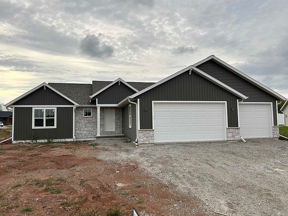 New 3 bedroom ranch built by Schmidt Bros Custom Homes, Inc. White kitchen cabinets, large island, walk in pantry, black stainless refrigerator, range, dishwasher and microwave. 10' high ceilings in great room, dining and kitchen. Gas fireplace, pocket office, white painted doors and trim. Granite countertops in kitchen, mudroom and bathrooms. Active radon and dampness control system. Concrete driveway, walkway to front door, patio, public sidewalk on Legacy Lane. Estimated completion date Oct 30, 2025.