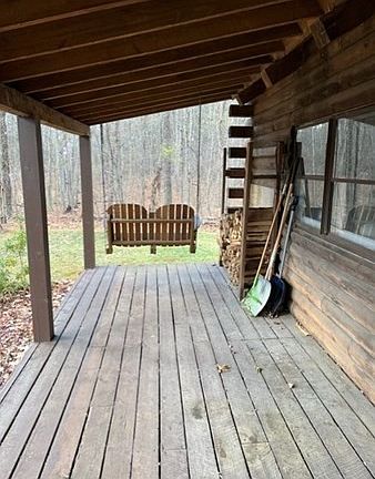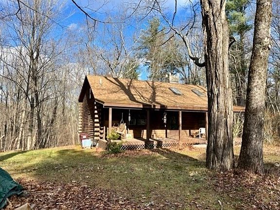 This rustic log cabin offers a picturesque view of the abutting conservation land. This home has plenty of trails for hiking and walking right outside your backyard. Inside you will feel the coziness of skylights and rugged beams as you sit & relax by your wood stove and sip on your cocoa! The first-floor layout offers an open concept living, dining and kitchen area with wide plank hardwood floors. Off the dining room are sliders to a large deck that runs the length of the home. Ther two bedrooms on the first-floor offer plenty of space. Upstairs is a large loft that could be made into more living space and plenty of storage. There are high ceilings in the basement with a walkout to your backyard. There is a finished space with heat should you want to make it an office, playroom or media area. The farmer's porch is the perfect spot to sit and watch the wildlife go by! This home will need some loving care but if you have the initiative this could be magazine worthy!