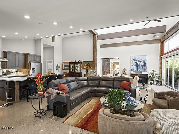 An extraordinary estate gracing 3.1 gated, level acres in the prestigious westside of Carson City. This property offers privacy, freedom, and flexibility with stunning Sierra and valley views and no HOA. This one-of-a-kind 6,000 square foot barn conversion seamlessly blends western character with modern luxury in an artfully reimagined space. Although originally constructed in 1946, this residence underwent a complete transformation, stripped to the studs and masterfully reimagined from a former barn into a stunning custom home. Every element was thoughtfully upgraded, including all-new plumbing, electrical, HVAC, windows, and high-end finishes throughout. The result is a seamless blend of timeless character and modern luxury. Bathed in natural light, the open-concept great room creates a sense of volume and ease, with soaring ceilings, exposed beams, and a seamless flow perfect for relaxed living or refined entertaining. Impeccable finishes, bespoke details, and designer touches elevate every inch from the gourmet kitchen to the expansive custom wall-to-wall glass door framing the back patio and landscaped grounds. The private primary suite is a sanctuary, featuring a spacious walk-in closet, spa-inspired bath, and direct access to the serene backyard.