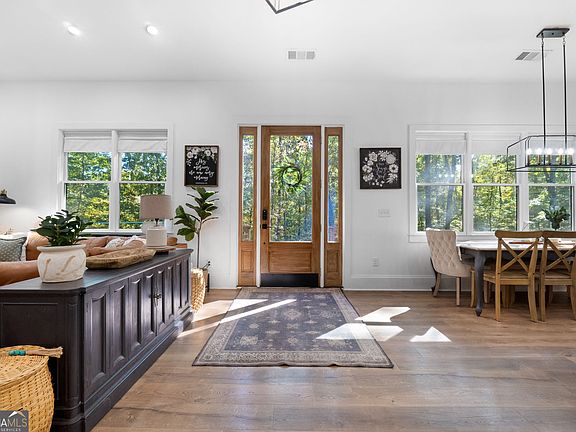 Own a once in a lifetime property in Butts County-one of only a few homes with direct frontage on the Ocmulgee River, bordering the Ocmulgee National Forest. This recently remodeled home offers 4 bedrooms and 3.5 baths, perfectly tucked away on approximately 24 acres of untouched mature hardwoods. Step inside this beautifully remodeled cottage that perfectly blends character and modern style. The open layout is filled with natural light from an abundance of windows, highlighting the high ceilings that make the space feel bright and airy. The large kitchen is a true showstopper, featuring stylish cabinetry, a huge center island, and a mix of butcher block and quartz countertops that create both warmth and elegance. It's the perfect space for cooking, entertaining, or gathering with family and friends. The living room offers a cozy retreat with its wood-burning stove with fireplace surround, adding charm and comfort during cool evenings. The primary suite feels like a peaceful escape, designed for comfort and relaxation. Soft natural light and serene tones create a peaceful atmosphere, while the spacious walk-in closet offers plenty of room for organization. The luxurious master bath features a beautiful tiled shower, and a separate soaking tub providing the perfect balance of style and practicality. It's a space made for unwinding at the end of the day - a truly romantic escape within your own home. The home features three additional bedrooms, all designed with family and comfort in mind. One of the bedrooms includes its own private bath, making it ideal for guests or an older child who enjoys a little extra privacy. The other two bedrooms share a convenient Jack and Jill bath, perfect for siblings or visiting family. Each room is bright, welcoming, and offers plenty of space to grow - whether used as bedrooms, playrooms, or cozy homework spaces. Additional features include a guest half bath, tons of closet space and newly installed roof. Every detail of this home has been thoughtfully updated, creating a welcoming space that's move-in ready and full of personality. Nestled on beautiful wooded acreage, this property offers the perfect balance of privacy and outdoor adventure. A gentle path leads to the river, where you can spend your days kayaking, fishing, or enjoying peaceful picnics by the water's edge. Surrounded by nature, it's a place where you can unwind, explore, and make lasting memories with family and friends - all right in your own backyard. Shown by appointment only.