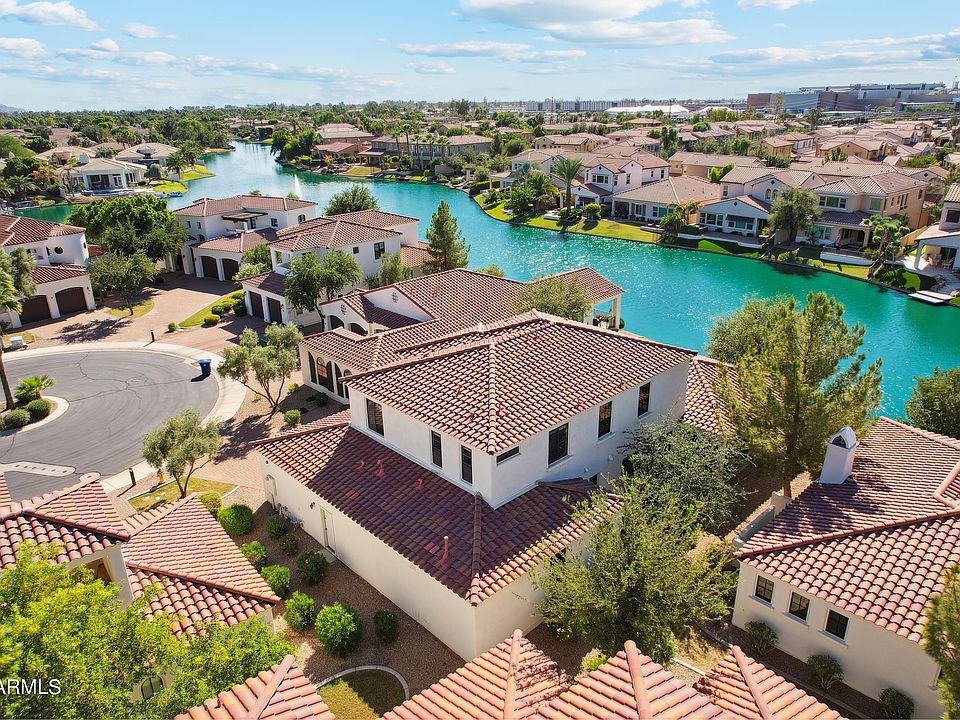 WOW! Move quick to buy this lakefront Santa Barbara style home on one of the most desired cul-de-sac lots in Villas at Ocotillo. The freshly painted interior features 4 bedrooms, 4.5 baths + a 3 car tandem garage! Enjoy cooking in the wonderful chef's kitchen complete with stainless steel appliances incl. gas cooktop and refrigerator, oversized island, and abundant cabinet space! Family room is open to kitchen with fantastic water views! There are two primary suites with one up and one down both with large walk-in closets. Wake up and enjoy your morning coffee on the large covered patio overlooking the water. Community includes heated pool and spa, also with lake views! HOA covers water, sewer, trash and landscaping, wow incredible! Water Softener as well! *Just reduced $100,000* This highly sought after gated community is conveniently located to plenty of shopping and dining destinations!