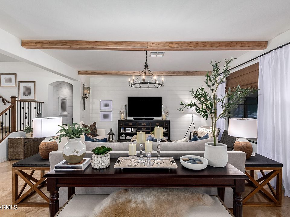 Discover an exceptional 5-bedroom residence nestled in the picturesque lake, Luxury Gated Villas at Ocotillo.This home greets you with a charming entry, a paver driveway, shade trees, and a welcoming courtyard. Designer finishes throughout. Step inside to find an inviting home that has been meticulously maintained and upgraded. The grand great room accentuated by exposed wood beams adds warmth and glamour. The private formal dining area provides the perfect backdrop for elegant meals and gatherings. The heart of the home, a sleek kitchen, is equipped with rich wood cabinetry, high-end stainless steel appliances, 5 burner gas stove, double wall ovens, and exquisite granite counters.Fabulous floorplan with two masters ( one up and one down) and an addl bedroom on first level too! Read more All Closet are walk in! The bonus room option provides additional living spaces for a versatile den ideal for a home office, and a upstairs loft is ideal as a media center, both perfect for entertainment and relaxation. The community amenities elevate the living experience, featuring a refreshing pool, rejuvenating spa, pickleball and more, encouraging an active and social lifestyle. This pristine property offers a blend of comfort, style, and luxury, ideal for creating lasting memories. Don't let this dream home pass you by! Many great restuarants and Chandler Fashion Square Mall and other shopping nearby and 25 minutes to Sky Harbor Airport! Perfect as a lock and leave for winter visitors or full time resident with active lifestyles with no yard work! All outdoor landscaping is maintained by the HOA and Water and Garbage are included in the HOA fees! A true gem , it is gorgeous inside!