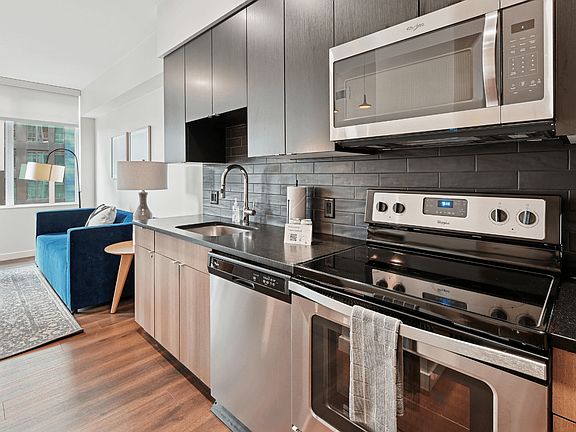 - Exterior features: Barbecue, Bike Sharing, Community App Powered by Cobu, Community Events, Complimentary Coffee Station, Conference Room, Coworking Spaces, Customizable Closet System, Demonstration Kitchen, Designer-Furnished Apartments Available, Electric Vehicle Charging Station, Game Room, Gathering and Networking Spaces, Homesharing Offered through Airbnb, Indoor and Outdoor Entertaining Areas, Keyless Apartment Entry, LEED Gold Certified, Motorized Shades, On-Site Management, On-Site Whole Foods and CVS, Pet Friendly, Quartz Countertops, Short Term Lease, Stainless Steel Appliances, TV Lounge, Tall Ceiling Heights, Theater, Tile Backsplash, Walk-In or Bathtub Showers, WiFi in Common Areas, Yoga Studio