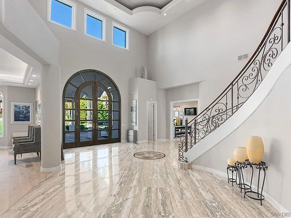 Inviting and beautiful Custom Estate is located in the finest coveted north side of Fairbanks Ranch, just a short walk from the community lake, tennis courts and clubhouse. Over 8248 sq ft of luxury and space! House boasts 5 en-suite bedrooms, wood panelled office, home theater, gym and a great size bonus room to enjoy. Grounds include a beautiful pool, spa, outdoor barbeque, open area for kids to play. BEST BUY IN FAIRBANKS RANCH! The formal entrance boasts a grand wrought iron stairway with double story ceilings. It takes you to 3 en-suite bedrooms, a bonus room, and a perfect master bedroom retreat with his & her bathrooms and closets plus a huge balcony. Marble flooring majestically adorn the first floor, where you will find a formal living room embellished with a beautiful fireplace mantel, a wood paneled office, home theater, gym and en-suite guest bedroom. In the Formal dining room you can host the most memorable dinners. Recently remodeled kitchen with newer appliances, home theather, gym, new flooring throughout and so much more to see and appreciate.Grounds include beautiful pool, spa, outdoor barbeque, open area for kids to play.