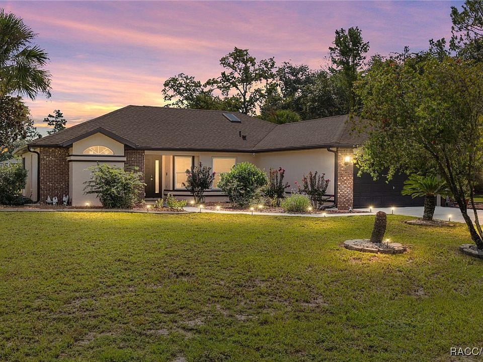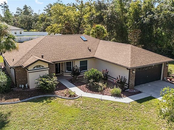 Step into this inviting 3 bedroom, 2 bathroom home offering 1,597 square feet of comfortable living space, thoughtfully cared for with a new roof as of January 2025, a new HVAC system in 2024, and storm impact windows throughout the home. Nestled on a beautifully landscaped 0.54 acre lot, this property offers a perfect balance of space, charm, and peace of mind. Upon entering, you’re welcomed by an open entryway that leads into the bright and airy living room, where a vaulted ceiling and a large sliding glass door fill the space with natural light and open to the backyard, creating a seamless indoor outdoor flow. Just off the living room, the formal dining room provides the perfect setting for family meals and entertaining guests. The spacious kitchen is designed with both function and comfort in mind, offering abundant counter space and cabinetry, and it conveniently connects to the laundry room and the two car garage for easy access. The primary bedroom serves as a private retreat, featuring a walk in closet and a beautifully designed en suite bathroom. Two additional bedrooms offer versatility for family, guests, or a home office. Throughout the home, the thoughtful layout ensures both comfort and practicality, with each space designed to feel open and connected. Outside, the beautifully landscaped yard provides a peaceful backdrop, offering endless opportunities for outdoor living, gardening, or simply enjoying the privacy and tranquility that comes with more than half an acre of land. Conveniently located near major roadways, this home combines spacious living, thoughtful updates, and a serene setting. Don’t miss the chance to make this well kept property your own.