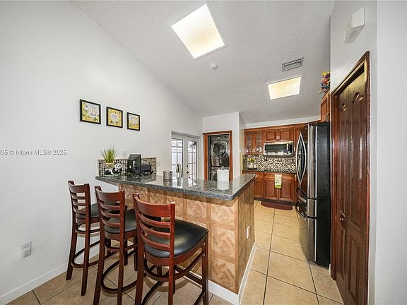 Beautifully maintained single-family home in Miami featuring 4 bedrooms and 2 bathrooms. Open layout with vaulted ceilings, spacious living and dining areas, and a remodeled kitchen with granite counters, wood cabinets, and stainless-steel appliances. Primary suite includes walk-in closet and updated bath. Fully tiled patio with covered outdoor kitchen, perfect for entertaining, plus gated side yard with room for small boat or trailer. Ample storage, indoor laundry, and move-in ready condition. Conveniently located near top schools, shopping, dining, and major highways. A perfect blend of comfort and functionality—ready for its next owner!