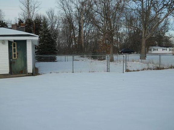 Exterior Features: The exterior is brick and vinyl siding. The windows and soffits are intact. There are no eaves troughs. The roof is asphalt shingles. The driveway is gravel. There is an unattached pole barn( with a concrete floor) in the back yard. The back yard is fenced in and there is a pet fence area in the fenced in back yard. Interior Features: This is a 2 bedroom home with a living room, dining room, kitchen with sink, all its cabinets, and 1 bathroom with all amenities. The hot water heater and furnace are in the basement.