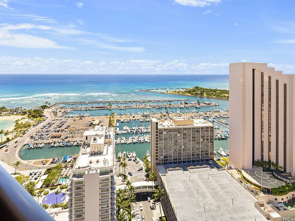 Rarely available and perfectly positioned, this Fee Simple, 1-bedroom condo on the 39th floor in Discovery Bay delivers front-row, panoramic views of the Pacific Ocean, Ala Wai Yacht Harbor, and Magic Island. Spanning 769 sf, this bright and airy residence features an open layout filled with natural light, an updated kitchen with a large pantry, and custom built-ins to keep you organized. the enclosed lanai expands your living space and creates the perfect spot to sip morning coffee or take in breathtaking evening sunsets over the water. Discovery Bay offers an array of resort-style amenities including a pool, hot tub, fitness center, BBQ area, sauna, and 24-hour security with reasonable maintenance fees. Ideally located at the gateway to Waikiki, you're also steps from Ala Moana Shopping Center, sandy beaches, world-class dining, and endless entertainment. Whether you're searching for your first home, a vacation getaway, or an investment property, this condo combines stunning views, desirable amenities, and an unbeatable locale to deliver the ultimate island lifestyle. 2 cats allowed, furniture included if desired.