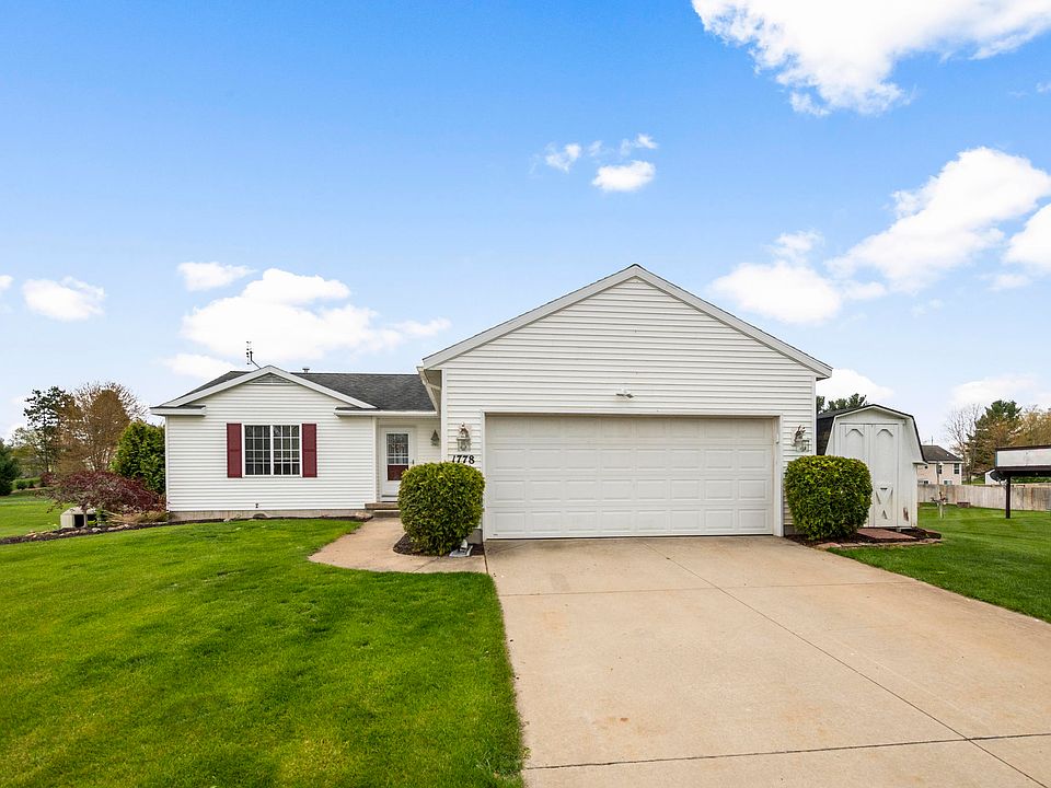 [Price Adjustment] Come check out this well-maintained 3 bedroom 2.5 bathroom ranch! On the main floor, enjoy an inviting open floor plan with cathedral ceilings, granite countertops with a stone backsplash in kitchen, stainless appliances, main floor laundry, oak hardwood, tiled floors and new plushy carpet. The main floor master suite includes his & her sinks, spacious cathedral ceilings and his & her closets. In the basement, you'll find plenty of space for entertaining in the living room, or even working from home with a large bedroom and full bathroom. Outside, 2 sheds are included (6x8 and 5x7), an oversized deck (10x17) with a large privacy tree and a swing underneath. Not to mention, a beautiful yard that includes a fire pit. Also features: 2 stall attached garage, central air conditioning, underground sprinkling, humidifier system, water filtration system and water softener (owned), and this home is pre-wired for home-network system