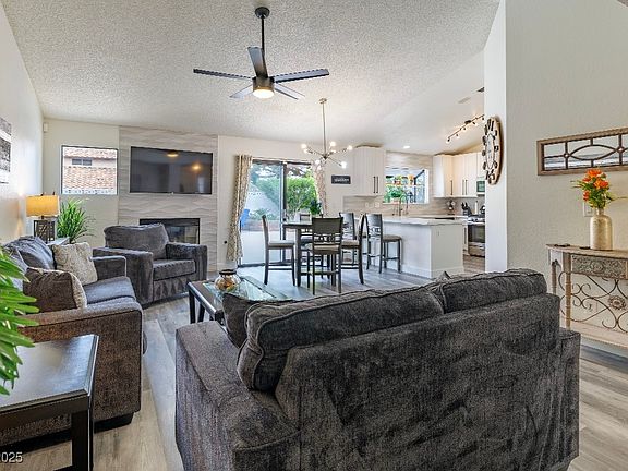 Experience true desert luxury in this beautifully renovated 1,250 sq ft, 3 bed, 2 bath home tucked in a peaceful neighborhood near the 215, top shopping, and premier dining. Step inside to a bright, open floor plan where a chef-inspired kitchen—complete with stainless appliances, modern shaker cabinets, quartz counters, and stylish bar seating—flows seamlessly into a spacious family room highlighted by a striking fireplace. The primary suite feels like a private retreat, featuring a spa-style ensuite with a gorgeous tiled walk-in shower, dual-sink vanity, and generous walk-in closet. Two additional bedrooms share an elegant, fully updated bath. Sitting proudly on a corner lot, the backyard is a true oasis with a sparkling pool and spa, mature landscaping, and a secure storage shed. The epoxy-coated garage adds durability and style, while the professional desert landscaping delivers vibrant, low-maintenance curb appeal. This home is truly move-in ready—an absolute must-see!