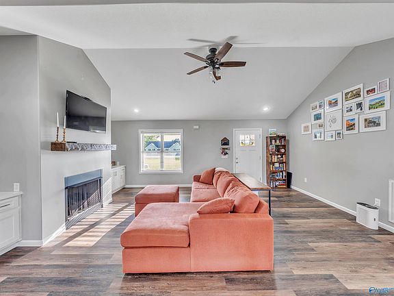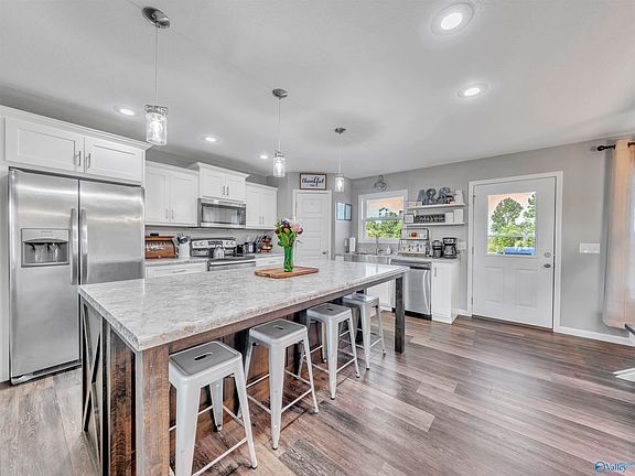 Charming 3BR/2BA home on over 1 acre in Rainsville! Features an open floor plan, vaulted ceiling, luxury vinyl plank flooring, and a HUGE kitchen island. Enjoy an isolated master suite with an extra-large walk-in closet, spacious laundry room, and 2-car garage. Exterior includes a covered front porch, stack rock foundation, and vinyl siding. Move-in ready with space, style, and comfort—don’t miss it!