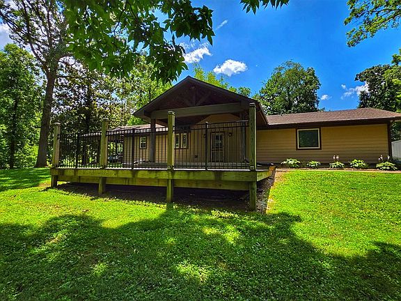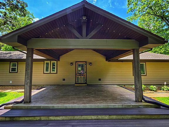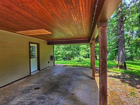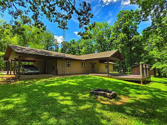 Enjoy peaceful country living just minutes from town! This beautifully maintained home with a stone and vinyl exterior sits on 5.86± acres, mostly wooded with mature trees that provide plenty of privacy and a serene natural setting. An asphalt circle driveway offers plenty of parking space and adds convenience and curb appeal. This spacious home features 3 bedrooms, 2.5 bathrooms, and an open-concept layout ideal for everyday living and entertaining. The living room showcases double trey ceilings and a large stone fireplace with gas logs, creating a warm and inviting focal point. The kitchen is a standout, offering an abundance of custom cabinetry, granite countertops, a tile backsplash, and all stainless steel appliances. It flows seamlessly into the dining and living areas for a connected and functional feel. Hardwood and tile flooring run throughout the main living areas, while the bedrooms are carpeted for added comfort. The primary suite features elegant coffered ceilings, a large walk-in closet, double vanities, a jacuzzi tub, and a tiled walk-in shower—providing a peaceful private retreat. Two additional bedrooms offer plenty of space, natural light, and storage. Step outside to take full advantage of the peaceful setting. The covered back porch with stamped concrete is perfect for relaxing or entertaining, and there’s also a rear deck for grilling or enjoying the sunset. The home includes a 1-car attached carport, plus a 20x30 detached garage/shop with concrete floors and electric—ideal for hobbies, storage, or workshop use.