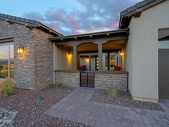 This less than 1 yr. old and still under builder warranty, beautiful home located in sought after Trilogy at Verde River which is NOT impacted with the hauled water issue in Rio Verde Foothills. Walking distance to club house and of its amenities. Very popular Latigo model with over 2600 square feet, with separate casita. Many builder upgrades including Gourmet kitchen with Monogram appliances, large granite counter tops, tile flooring, 9' ceilings, 8' solid core doors. Separate dinning room and great room. Separate laundry room with access to an oversized extended garage with epoxy flooring and tankless water heater. Exceptional wall of windows that opens up to a large covered patio with built in BBQ and fireplace. Private casita. Just completed heated pool and spa. Move in ready Front office can be converted to a 4th bedroom. Under counter lighting in master bath. Outdoor TV