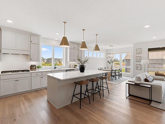 Experience relaxed living in OneTenTen Homes' new one-level Tracey Rambler Cottage at Pheasant Run Villas. The main level shines with a window-filled great room, seamlessly connected kitchen and dining area, a luxurious primary suite, and a second bedroom and bathroom. Enjoy the outdoors with a main floor large sun porch with Sunspace windows and a covered Trex deck and lower level concrete patio. The finished lower level expands your living space, offering built-in cabinets, a second fireplace, an entertainer's dream wet bar, an additional bedroom, and another bathroom. Don't miss the hidden room as well! This detached villa blends comfort, style, and functionality with custom home features.