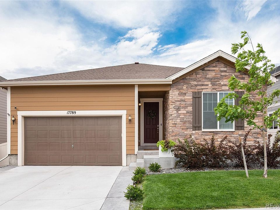 Don't miss out on this MASSIVE Alcott floorplan in the coveted Anthology West neighborhood! This ranch style home has interior upgrades throughout and professional landscaping, making it turn-key ready. Entering into the foyer, you'll first see beautiful dark hardwood flooring extending through a grand hallway into the open concept family room, kitchen and dining room. Enjoy entertaining family and friends on the oversized kitchen island then relaxing on the covered patio and finally take a dippidy in the hot tub. Also, on the main floor you'll find the master bedroom/bathroom suite, 2 secondary bedrooms and full size bathroom, office with French doors and a laundry room. Make your way to the FULL finished basement which features a media room with projector screen, for a perfect family movie night, flex/gym room, where you can get your swole on, 2 bedrooms, a full bathroom and a huge utility/storage area that can be used for any hobby room or storing everything you don't want to look at.