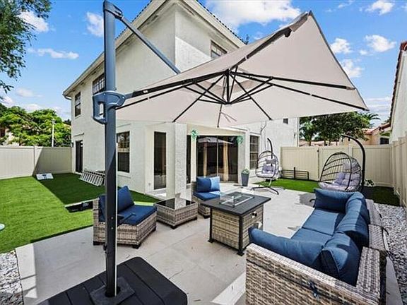Nestled in the Wellington Lakes community, this beautifully updated 4-bedroom, 2.5-bath retreat offers the perfect blend of comfort and convenience. You are welcomed inside by abundant natural light and tasteful furnishings. The primary suite features a king-sized bed and a beautifully renovated ensuite bathroom. 3 additional, spacious bedrooms each provide queen-sized beds. Step outside to your fully fenced yard with oversized umbrella and seating around the fire pit. Enjoy access to the community's lakeside pool and hot tub as well as children's play area. Ideally located with all equestrian venues just minutes away. Pets are welcome with landlord approval.