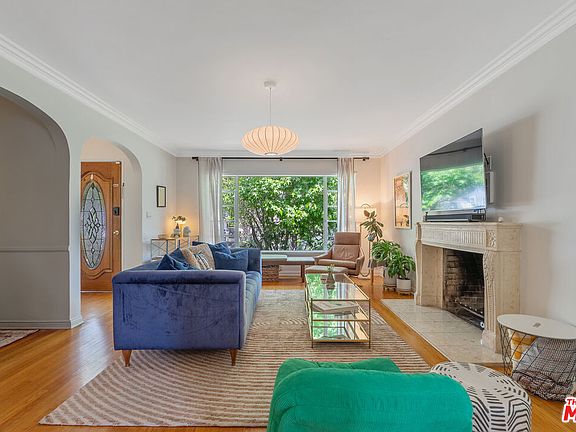 Stunning 1941 Traditional with views of the towering San Gabriel Mountains, in the much-coveted President Streets neighborhood near the Eaton Nature Preserve. Featuring a main house consisting of 4 bedrooms and 3 bathrooms, plus a detached guest house (measured at 592 square feet), which includes a full bathroom, a second laundry hookup, storage area, and a soundproof music room. Past the lush and drought-tolerant greenery and the meandering stone walkways, you will find the inviting living room, anchored by a fireplace, with an oversized picture window that brings the outdoors in. Warm original oak floors lead you into the formal dining room via a large archway, where you can enjoy your meals with views out to the garden, where details like the home's original porthole window and curvature of the front porch remind you of a time when all the details of a home were carefully crafted and thought out. The modernized kitchen immediately draws your eye to the quaint breakfast nook, with bay windows and original wainscoting. Other unique details include beamed ceilings, fun saloon doors leading to the laundry room, and a scalloped valance above the sink. Light-filled and airy, with glass-front cabinets, quartz countertops, and brass hardware- the kitchen is a seamless blend of classic and modern. French doors lead you to your own Mad Men-style office, with rich wood built-ins, a sink for a wet bar, and an arched transom window. Bathed in light with an oversized skylight and its own en-suite bath is one of the bedrooms. Off the long hallway, you will find a full bathroom featuring classic black-and-white tile and dual windows. Another large bedroom, with a door leading to the beautifully lit backyard, and the primary suite make up the rest of the main house. The primary suite is 560 square feet of sheer delight, featuring a vaulted ceiling, a skylight, two closets, bay windows that include French doors, and a stunning bathroom with an oversized shower and built-in bench and shelf, dual sinks, and a closet with new custom-built storage shelving and pocket door. Completely gut-renovated in 2024, with bold and brilliant porcelain olive green tile from Wow Design EU and Huntington White Terrazzo floors. Step outside and stare in awe at the grandeur of the towering mountains from your hammock while eating an orange from your abundantly producing tree. The flagstone path leads you to the recently gut-renovated guest house, and it is absolutely incredible. Telescoping Fleetwood sliding glass doors lead you to a foyer with oak built-ins and a sink with a refrigerator. The main area showcases vaulted ceilings, a skylight, custom casework shelving with integrated lighting, and hardwired internet. Polished concrete throughout, and new Milgard windows, plus a well-sized bathroom with oversized shower, vertical picture window, floating vanity, and dazzling olive porcelain tile work. Need a space to make some noise? This guesthouse also features an interior room with soundproofing materials between double drywall and mounted picture lights to showcase your favorite art pieces. A storage area with laundry hookups and a utility sink finishes off the space. The property also features an owned solar system, seamless gutters (2024), an EV charger (2024), 200-amp upgraded panel, 30-year roof replaced in 2017, retrofitted foundation (2024), and a new water main line (2024). Minutes to Old Town Pasadena with its renowned shopping and dining, and other close treasures such as the storied 'Christmas Tree Lane,' with over 100 cedar trees lit up during the holiday season; this neighborhood has a unique blend of old charm, small-town vibes, and unmatched natural beauty in Los Angeles.