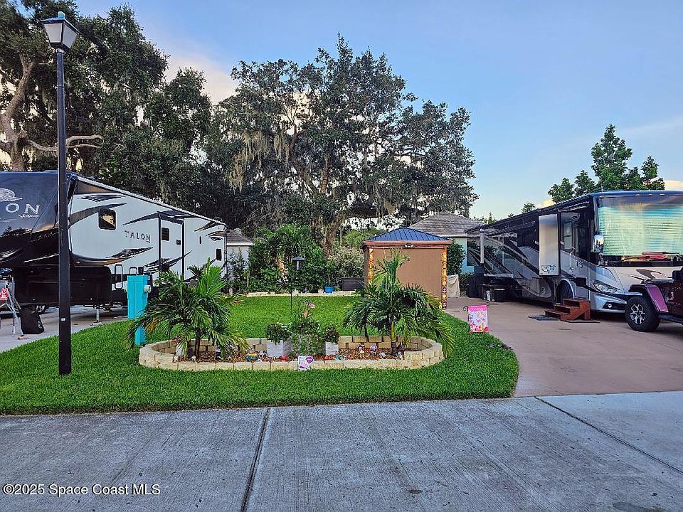 Welcome to your slice of paradise in the exclusive, gated community of Willow Lakes RV Resort! This 5,227 sq ft executive RV lot comes fully equipped with a spacious double concrete pad (57.86 feet deep), perfect for any size RV, plus full hook-ups and a large, private tiki hut that will include a tv, outdoor couch, and 2 oversized storage containers. The lot is buildable if you ever decide to construct a home. Enjoy resort-style amenities covered by a $240/month HOA, including lawn care, pest control, garbage/recycling, public utilities, Spectrum cable/internet, and access to a sparkling pool, tennis/pickleball courts, bocce, shuffleboard, and a vibrant clubhouse with weekly events. Catch breathtaking SpaceX launches right from your lot and take advantage of the close proximity to scenic Playalinda Beach and nearby bike trails. Golfers will love the community's 9-hole course with flexible memberships. Whether you're seeking a peaceful seasonal escape