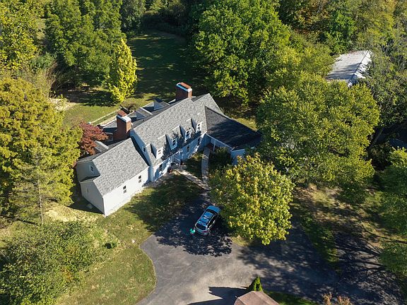 Discover this incredibly unique property set on over 4 acres w/breathtaking views & exceptional craftsmanship throughout. A vaulted great room w/soaring ceilings & dual fireplaces creates a stunning focal point, while walls of windows frame the panoramic scenery. Enjoy outdoor living year-round on the enclosed screened porch w/a cozy fireplace or step out to the balcony or patio for serene sunsets. The huge eat in kitchen has it's own fireplace & bay windows overlooking the wooded views. The first-floor primary suite features its own fireplace, private walkout to the patio, a study, walk in closet & 3 additional closets & an adjoining bath. An elevator provides effortless access. The finished lower level walks out to a screened porch & patio & has fireplace, wet bar, separate wet bar room & full bath. Geothermal heat, waterproofing, Rhino exterior, refinished hardwood floors & fresh paint are just some of the updates. Multiple outbuildings provide versatile space for hobbies, storage, or creative use. With beautiful wood floors, architectural charm, & remarkable views from every angle, this one-of-a-kind retreat is truly unforgettable.