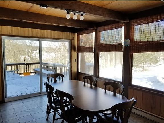 STUNNING VIEWS FROM FLR TO CEILING WINDOWS! LESS THAN 1/2 MILE TO GREEK PEAK!YEAR ROUND LIVING AT ITS BEST!OPEN FLOOR PLAN,CATH/BEAM CEILNS,NEW 2F BATHS, BALACONY OFF MASTER BEDROOM W/COFFEE VIEWS FOR MILES!FULY EQUIPPED KITCH W/ NEW PROPANE STOVE,1ST FLR LNDRY,NE WOOD FRPLC IN FAM RM ,NEW RINNAI UNIT IS SUPP HEAT,NEW WELL PUMP&LINE/WATER FILTERATIN SYSTEM ,UPDATED 200 AMP ELEC-ADD ACRERAGE AVAIL!