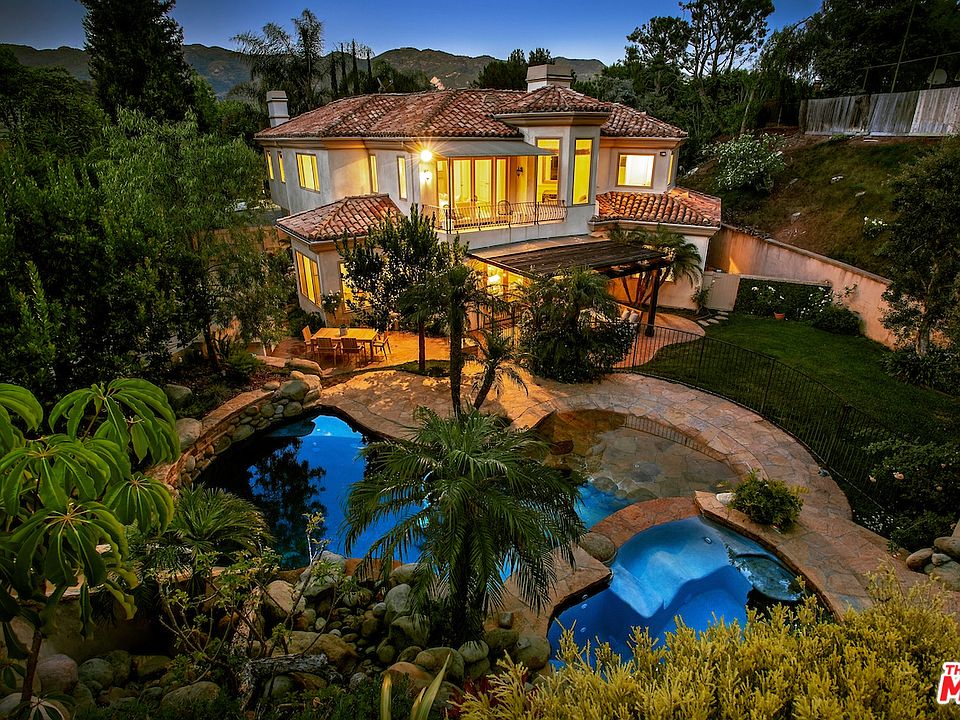 Situated at the end of a quiet cul-de-sac in the 24-hour guard gated Palisades Country Estates, this extremely private Mediterranean estate was designed by Clark Remington and newly built in 2000. Offering 6 bedrooms and 5.5 baths in approximately 5,835 square feet of living area and situated on a large 54,972 SF lot. Custom craftsmanship and exquisite details include a two-story entry with high ceilings throughout, hardwood floors and an abundance of natural light. Gourmet center island kitchen opens to family room and yard. Sumptuous master suite with sitting area, private terrace, fireplace, walk-in closet, and a spa-style bath. All additional bedrooms are generously sized. The backyard is a resort-like paradise with a grassy yard, outdoor dining area, built-in barbeque and expansive pool & spa, which boasts a 33' foot long water slide. Additional features include 3 fireplaces, 3 zone heat/air and 3-car garage with direct entry.