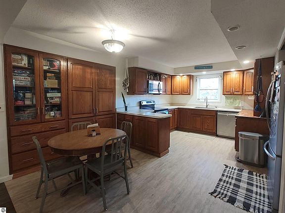 Discover the space and comfort you’ve been looking for with this 7 bedroom, 3 bath ranch-style home set on 4 gorgeous rolling acres. This home could be perfect for a large family, multi-generational living, or perhaps a peaceful retreat; the possibilities are endless. The main floor offers 4 bedrooms, 2 bathrooms, laundry, kitchen, and 2 living rooms. The lower level walkout offers 3 bedrooms, 1 bath, laundry, kitchen, and living room, along with a large utility room, currently used as a woodshop. This property is less than a 10 minute commute from Cadillac, offering a balance between privacy and convenience. The home has had many thoughtful updates, including new windows (2020), an outdoor wood boiler for efficient heating (2019), a sump pump (2021), a new line to the engineered multi-field septic system (2023), added insulation (2024), and energy-efficient toilets (2019), offering peace of mind and long-term value. A 30x30 outbuilding with a mechanic’s pit provides workspace and storage options, making it ideal for hobbies or small business needs. The property also includes 2 other outbuildings that are currently used as storage sheds, one of which is cedar-lined with log beams and was previously a guest cabin. The owners love the wildlife attracted by various fruit trees and the hilltop sunset views. Enjoy the tranquility of Northern Michigan living with plenty of room both inside and out, while still being just minutes from town, trails, and outdoor recreation.