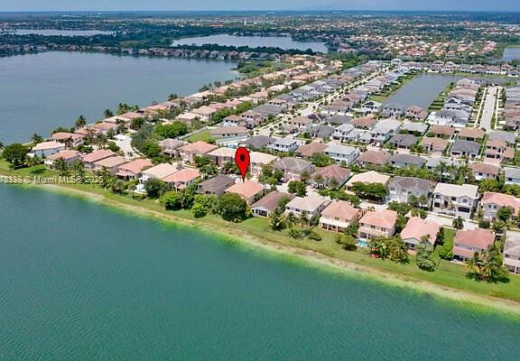This stunning property offers the perfect blend of luxury and comfort, featuring beautiful and massive LAKE VIEW and POOL. It has new IMPACT WINDOWS and DOORS, elegant iron/wood staircase adds a touch of sophistication to the interior, while high ceilings and wood and tiles floors throughout the home amplify its spacious feel. Abundant natural light.The kitchen and family area seamlessly flow into the formal dining /living rooms. Downstairs, find a bed and complete bath,as well as a laundry room w/sink .Upstairs, the principal bed features a sitting area with amazing lake views.Two walk-in closets, and his/her bathrooms offer convenience.There are two more beds with a Jack and Jill bath.2-car garage /storage. This home combines elegance, functionality.GREAT LOCATION.TOP RANKED SCHOOLS