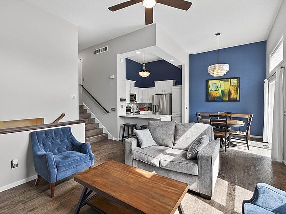 Step into this stunning townhome, where modern design meets everyday comfort. The open floor plan and tall ceilings create a bright, airy atmosphere—ideal for hosting friends or enjoying quiet evenings at home. The sleek kitchen is a true highlight, offering stainless steel appliances, upgraded countertops, a tile backsplash, and flexible seating at the island or in the dining area, which opens to the deck and backyard.