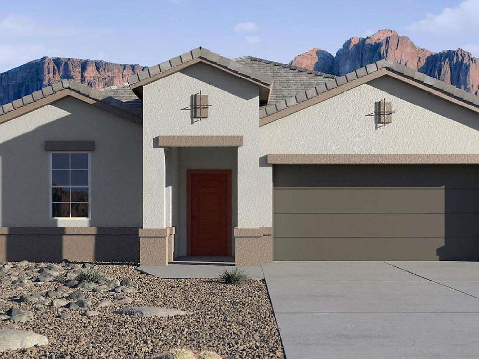 This BRAND NEW home will be ready in October! The ''Cali'' is a spacious open concept with 4 large bedrooms and 2 bathrooms. Interior finishes include tile flooring throughout with carpet in the bedrooms, granite counter tops in the kitchen & bathrooms, and white cabinets. Smart home technology is included along with a 14 seer HVAC and energy saving features. Also, this home includes stainless steel appliances, 2'' window blinds, garage door opener, rain gutters, plus front yard desert landscape. Come and see this home just walking distance to the library and city hall in beautiful Sorrento!