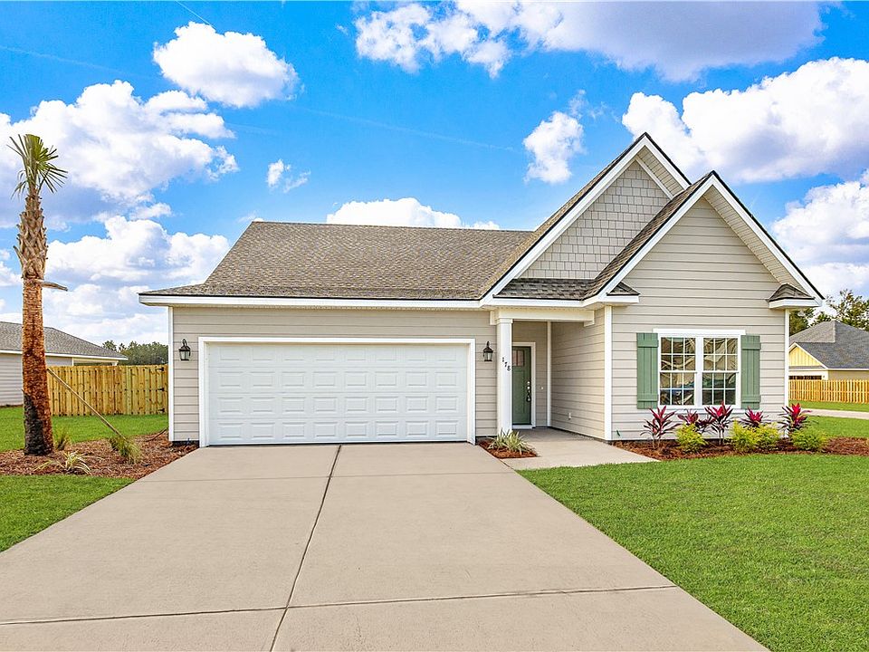 MOVE-IN READY NEW CONSTRUCTION! Riverdale Plan--3 bedrooms/2 baths. This open floor plan has all granite countertops, LVP flooring in main living areas bedrooms and laundry (NO CARPET), and tile in the baths. All stainless steel appliances (no refrigerator). Seller added a 6ft wooden privacy fence, cabinets in the laundry, and cabinets in the mud room. This is a newer development within Carriage Gate Plantation. It's a gated community with great amenities, including a large pool, lounge area, fire pit, and a grilling area.