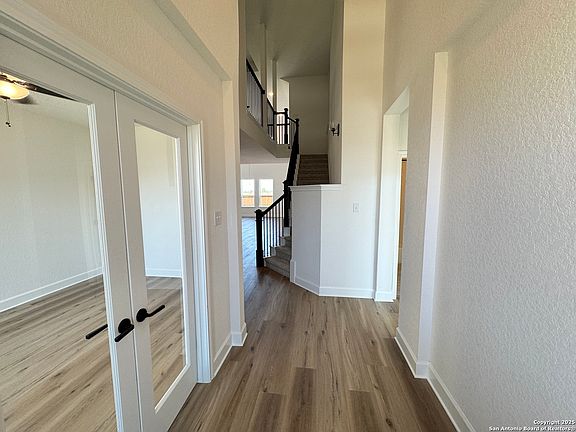 Designed for both entertaining and everyday living, this two-story home offers a thoughtful layout that balances style, function, and comfort. At the heart of the home, the gourmet kitchen includes a spacious center island and a wood vent hood, flowing seamlessly into the open family room. Soaring two-story windows in the family room fill the space with natural light and frame views of the covered patio-perfect for indoor-outdoor gatherings. A private study provides an ideal spot for working from home or pursuing hobbies, while the optional planning center adds even more flexibility. Guests will appreciate the convenience of a first-floor suite with a full bath, while upstairs features three secondary bedrooms and a game room that can double as a media space. A striking two-story foyer and open railing overlooking the family room add elegance and visual appeal. Nestled on a cul-de-sac lot, this home perfectly combines comfort, versatility, and style. This home features design selections thoughtfully curated by our professional studio team. Each finish, from flooring and cabinetry to countertops and special touches, is chosen with care to create a cohesive and beautifully balanced look. Guided by timeless design principles and inspired by modern lifestyles, the result is a home that is both stylish and welcoming from the moment you step inside. This home is located in Megan's Landing, a vibrant family-friendly community nestled in the scenic Texas Hill Country. Enjoy quick access to shopping, dining, and entertainment, plus nearby outdoor escapes like the Medina River and Government Canyon State Natural Area. With top-rated Medina Valley ISD schools, Megan's Landing offers the perfect blend of natural beauty, convenience, and community for your family's next chapter.