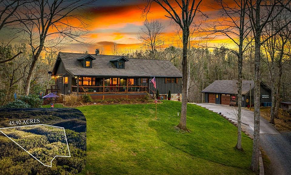 Over 45 acres of complete privacy just minutes from Blue Ridge, paired with year-round mountain views—this is the rare land-and-home combination that almost never hits the market. With usable acreage, trails, and room to grow, develop or just enjoy this blue ridge opportunity offers a peaceful mountain retreat with real upside for the future. Investors, this updated luxury home opportunity in prime location in Blue Ridge area—properties with this scale, location, and flexibility are increasingly hard to find. Thoughtfully renovated with high-end updates throughout spans over 5,500 sq ft with 6 bedrooms and 4 bathrooms, blending modern comfort with timeless mountain character. A chef-inspired kitchen anchors the main level with high-end appliances, granite countertops, and sleek tile finishes, flowing seamlessly into open living and dining areas made for gathering. Hardwood floors and a stone fireplace add warmth and texture throughout. The main-level primary suite is a true escape with a generous walk-in closet and a beautifully remodeled primary bath featuring dual vanities, refined finishes, and a relaxing soaking tub. Upstairs bedrooms offer flexible space for guests, office, or play. The lower level includes a private in-law suite with its own kitchen, dining area, bedroom, and bath—ideal for hosting or multi-generational living. Outside, this land offers so much for acreage enthusiasts—space to explore, ride, build, and breathe. Enjoy landscaped grounds, an upscale pool and hot tub, extensive ATV trails, additional outbuildings, and a 26x36 garage for storage, hobbies, and mountain toys. Blue Ridge land buyers look for privacy, views, usable ground, and room for future guest cabins—this property delivers. Minutes to Old Toccoa Farm and Blue Ridge—yet completely private. Tour it today and see what 45+ acres can offer.