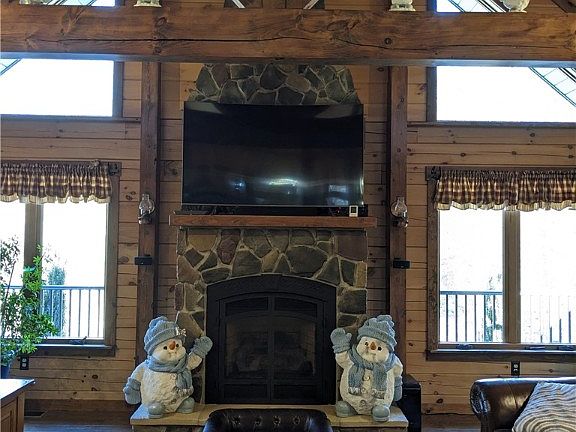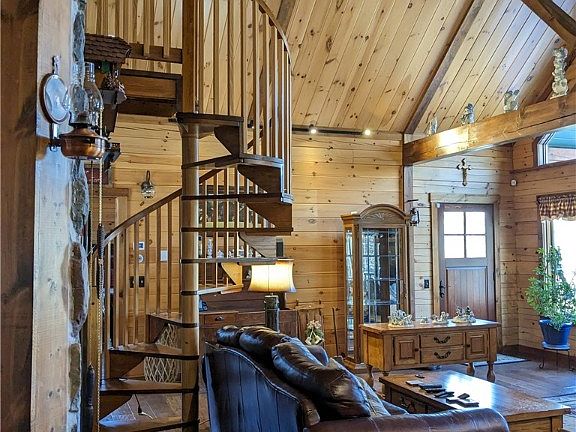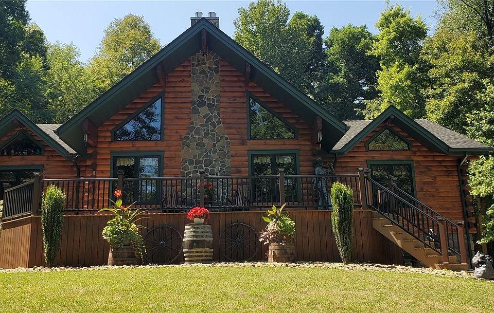 This stunning Log Home on a 4+ acre lot offers peace and tranquility in this beautiful rural setting. Stone Pillars greet you as you enter this mature tree lined private paved lane. Built in 2011 by Laurel Mountain Structures this 3 Bedroom, 2.5 Bath home features rustic charm with modern amenities.Knotty Pine Walls and Cathedral Ceilings,Wood Beams,Engineered Hardwood Floors,Custom Windows,Warm Radiant Heat,Floor to Ceiling Stone Fireplace and much more. Spiral Staircase to large Loft. The Kitchen features Amish hand stained Maple Cabinetry, Stainless Appliances,Granite Countertops,Pantry,Island with seating. Watch the wildlife with the wall of Windows in the Dining Area. First floor Ensuite Master Bedroom has Cathedral Ceiling,Master Bath with a luxurious Air Tub,Large Shower and Walk In Closet. First Floor Laundry. Large Family Room, Exercise Room,Oversized Garage w/ Space for 3 cars. Trex Decking,Stamped Concrete Covered Patio and more. Close to RT 22 and 119. River Valley Schools.
