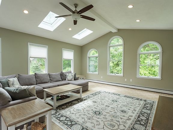This bright and spacious colonial has everything you need. Built in 1986, it offers 3 bedrooms, 2 full bathrooms, the main level includes a living room with a fireplace, a formal dining room, and a large great room with vaulted ceilings, skylights, and a sliding door that opens to the back porch. A mudroom connects the home to the attached garage, making day-to-day living easy and organized. Upstairs you will find 3 spacious bedrooms and a full bathroom. The finished basement provides even more flexible space with large open areas for a playroom, home gym, or office, plus a separate utility room with extra storage. Outside, the backyard is large, fully fenced in, and backs up to conservation land—offering space, privacy, and peaceful views. Set back from the main road, this property lives like a dead end street, near the Middleton line. This home is close to schools, shopping, and major highways. Showings begin at first open house.