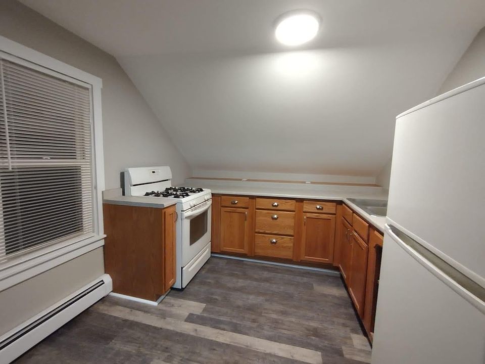 Newly Renovated 1-2 bedroom unit with tile bathroom with walk-in-closet. Gas Heat & Cooking. No Laundry. There is a laundromat 2 buildings over. Month to Month