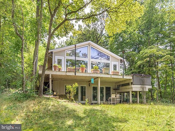 Loads of Potential! 3 bedroom, 3 full bath Contemporary. Studio apartment with 1 bedroom and 1 full bath, kitchen and deck. Living room with gas fireplace and cathedral ceiling. Wood floors. Kitchen with eat in area and breakfast bar opens to a grilling deck. Main Level Owner's Suite with skylight and private bath. The lower level is a large space with gas fireplace and walk out. Laundry area with full bath. Detached 2.5 car garage with work shop area and upstairs there is a studio apartment with a kitchen, full bath and deck. Private pier with 4 slips, water and electric. End of cul-de-sac location.