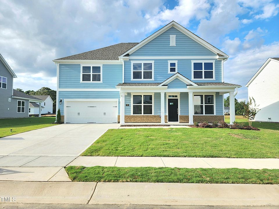 Welcome to 178 Gilmer St. at the brand-new community Eagle Creek located in Fuquay-Varina, NC! The Norman is one of our brand-new two-story floorplans featured at Eagles Creek. This home boasts an impressive level of comfort, luxury, and style, offering 5 bedrooms, 3 bathrooms, 3,262 sq. ft. of thoughtfully designed living space, and a 2-car garage. Upon entering through the front door, the welcoming foyer leads you past the flex room with beautiful French doors. This is adjacent to a formal dining area perfect for entertainment. Making your way into the kitchen you will delighted with the Normans luxury features. The Kitchen boasts a walk-in butler's pantry, an expansive kitchen island, beautiful quartz countertops, soft-close shaker-style cabinets with crown molding, and stainless-steel appliances. The Kitchen over-looks a cozy corner breakfast area, perfect for casual dining. This leads you onto the covered back patio where you can unwind after a long day. The open-concept layout integrates the main living area, which is a spacious family room. Directly to the right of the family room is a bedroom that is conveniently next to a full bathroom for easy access. On the second floor is where you'll find a loft, three additional bedrooms, each with its own walk-in closet, and two more full bathrooms. The loft offers a flexible space that can be used as a media room, playroom, or a fitness area/home gym. Off the loft is the primary bedroom thoughtfully accented with a trey ceiling. The primary bathroom features a tub and separate walk-in shower, dual vanity sinks, spacious walk-in closet, and a water closet for ultimate privacy. The laundry room completes the second floor and Norman floorplan! Eagle Creek is just 2 miles from US-401 N, allowing an easy commute to Downtown Fuquay-Varina and Downtown Raleigh, were you'll find a plethora of shopping, dining, entertainment, recreation, and much more. One-year builder's warranty and 10-year structural warranty. Your new home also includes our smart home technology package! The Smart Home is equipped with technology that includes the following: Wave programmable thermostat, Z-Wave door lock, a Z-Wave wireless switch, a touchscreen Smart Home control panel, an automation platform from Alarm.; video doorbell; Amz pop. photos are representatives With its thoughtful design, spacious layout, and modern conveniences, the Norman is the ideal new home for you at Eagle Creek! Schedule a tour today! *Pictures are for representational purposes only*