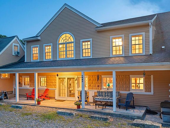 Situated on nearly 4 acres of mature gardens, flowering trees and open fields, this finely built home was reconstructed from a dairy barn and updated with modern custom finishes. Bucolic views from the deck & south-facing windows overlook a serene pond & rolling field, protected in conservation for perpetuity. Enjoy private deeded access to Spruce Creek, with opportunity to dock a motorboat at high tide, and access the Piscataqua, countless marinas, or a deep-water mooring. Stepping into the home, you are greeted by radiant stone floors, wooden beams, and a custom kitchen open to dining or living space. A spacious first-floor full bath and two office or bedroom spaces provide the opportunity for single level living. As you walk into your adjoining entertaining or event space from the kitchen, you'll be taken aback by unique exposed post & beam framing, soaring ceilings, and a grand fireplace for cozy evenings. French doors divide part of the barn into a public-facing art gallery/gift shop, ideal for in-home business, studio, or as additional living space. Upstairs you'll find 3 sun-drenched bedrooms, two full bathrooms, and a dedicated laundry room. Enjoy all the convenience of extensive walk-in closet space, stunning lighting, and a private bath in your master suite. An additional floor above the barn is partially finished and awaits your special touch.The separate guest house is complete with 2 beds, 1 full bath, a full kitchen, living room, and a private porch-ideal for hosting guests and family or a rental for additional income. Your drive-under garage parks at least 2 cars and is accessible from inside and out. This is the perfect place to live while managing a home-business or as a multi-family summer escape, minutes from 3 beaches at the heart of the New England coast. Just 6 minutes from Fort Foster and Seapoint Beaches, 10 minutes to downtown Kittery & Portsmouth, thriving with local arts, food, and culture.