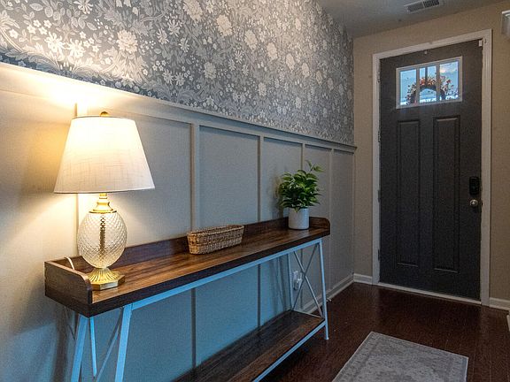 Spacious closetLarge islandCustom build insWallpaper and wainscoting