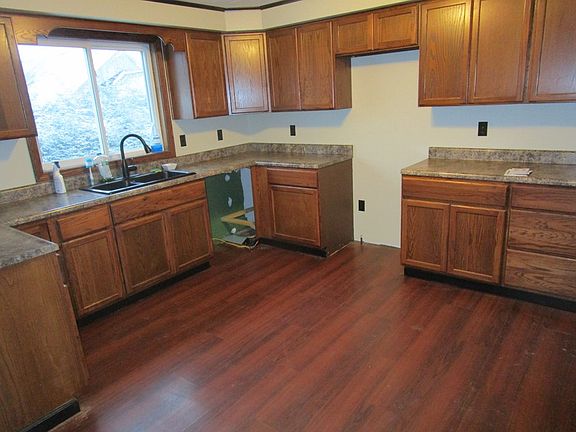 Edge of town delight.Move right into this nice home. Updated kitchen and bathroom. Big back yard. Nice location! This home has many updates: newer flooring throughout, re-painted interior, new tiled wall in shower, new toilet, vanity, and sink in bathroom, new cabinets, sink, molding, counter top, window, and drywall in kitchen, New stair treads, risers, windows, molding, and drywall in living room, furnace replaced in 2014, new subpanel and 80% of wiring in basement, new garage roof. Paved driveway with gravel parking area. Privacy fence near side entrance and chain fence around yard. Main level laundry. This is a must see!