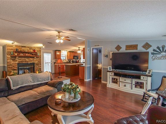 LOOK NO FURTHER! YOUR SPORTSMANS SANCTUARY IS HERE! This 3 bedroom, 2 bathroom, 60 x 27 double wide has plenty of star features! Laminate Flooring throughout, spacious master chefs kitchen with island for extra cooking room and entertaining, wood burning fireplace, and indoor laundry room. Enjoy the sunny Florida days in the screen enclosed porch and have your fun in the sun by taking a dip in the 12 x 24 above ground vinyl pool with an automatic cleaner! Bring your Boat, RV, Trucks, Trailers, and more because within all the space of your fully fenced 1 acre property, is a 2 car carport with attached storage shed, 1 car detached garage with power, wood deck under awning for private entry, AND 5 additional sheds giving additional space for all your toys! Few leasing restrictions for this to be an income producing property. 5 different Boat Ramps WITHIN 3.5 MILES, Biking and Walking Trails, Equestrian Hikes, and right by the Withlacoochee River leading into the Bay for your fisherman paradise to be complete! CALL TODAY BEFORE THIS ONE GETS AWAY!