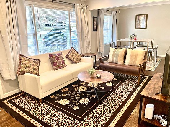 This cozy 3 bed & 1 full bath brick home has been fully updated and tastefully furnished. All 3 bedrooms have queen size bed, good size closet and bright windows. Wood floor throughout, Stainless Steel appliances, gas stove, dishwasher and all cooking utensils. Coded lock, Smart TV, Smart heating and cooling thermostat and exterior security cameras. Washer and dryer in basement and ample storage space. Under cover carport and long driveway. Located in a quiet no through street. 15-minute short drive to downtown Atlanta & Airport, 0.5 mile to I-285, 6 miles to Six Flag Over Georgia theme park.