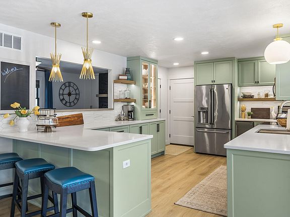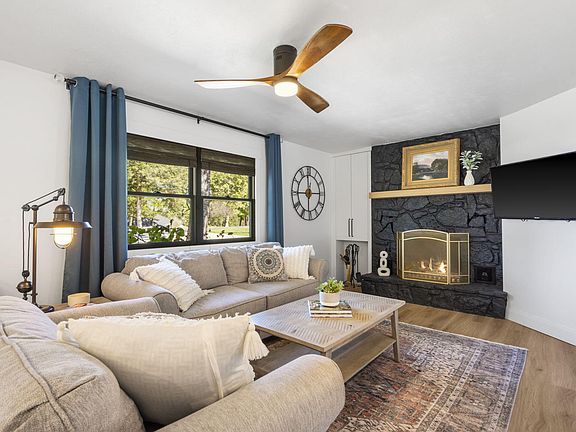 Ice makerOversized single car garageSplit bedroom floor planUnique fixturesSpacious primary en suiteRecently remodeled bathFire pit