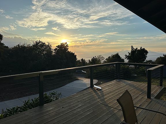 This very private property is located in Kula, on a private road, right past the Crater Road sign. It is only a 10 minute drive from Pukalani. This is the only home on the property and surrounded by an abundance of avocado, loquat, cherimoya, and peach trees. The home is newly renovated and has new appliances. This spacious 2 bedroom/2 bathroom 1,080 sq ft home is equipped with a washer and dryer outside, full kitchen with range, dishwasher, refrigerator, and a gorgeous deck with a view of the West Maui Mountains, ocean and sunset.