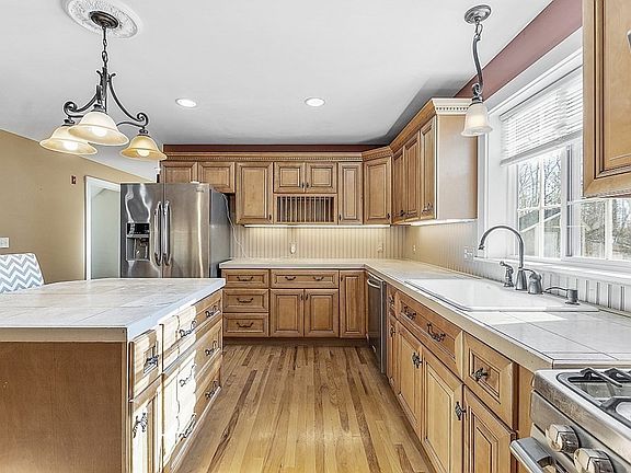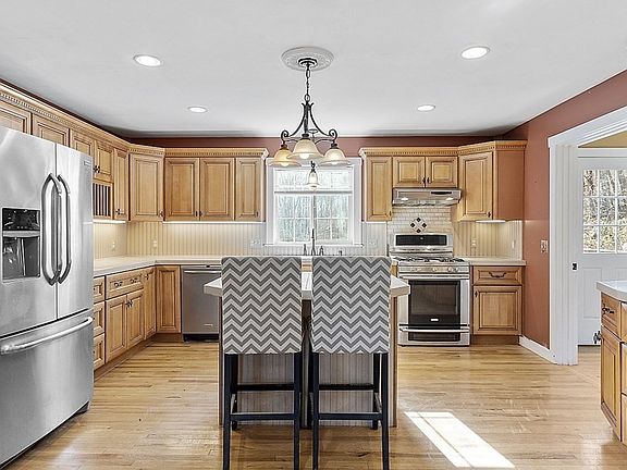 Just in time for the Holidays!! Wood floors can be found throughout the 1st and 2nd floors of this well-maintained cape located on a private 2.8 acre lot. The spacious kitchen has an eat-in island and plenty of cabinets. Off the kitchen, is another room with an additional gas stove & cabinets for a prep area as well as 1st-floor laundry. The dining room and living room offer plenty of natural light and space. Above the garage, there is a 27-31 space that is insulated and dry-walled and is ready to be completed for a game or family room. In the basement, you will find 3 additional rooms and a partially finished heated space for multiple opportunities. The deck off the back overlooks the large backyard and you can find a shed ready for storage and landscaping tools. The 2-Car garage is oversized and also offers additional space for storage. The 1st-floor living room has a mini-split for ac. Radiant heat throughout, Rinnei on-demand hot water. Close to Keene NH. Wood deck.