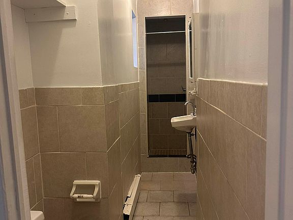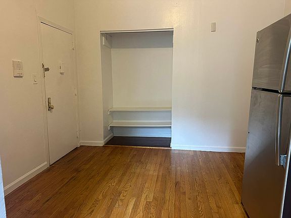 This is a very small studio on the ground floor and rent stabilized! Creativity required for this layout. Will fit a full sized bed beside fridge. Maybe you can get one of those sofa beds and maybe a small table but not much sq footage for full transparency. Photos are of the only rooms. Room one: kitchen/bed area; room two: bathroom.